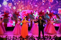 晚上19:40,訓練有素的東方合唱藝術團帶來的節(jié)奏明快、鏗鏘有力的《放飛夢想》、《為祖國而準備》、《沒有共產(chǎn)黨就沒有新中國》三首大合唱在朱啟高老師的指揮下拉開了整場晚會的帷幕。隨后,陜北歌唱家崔苗《陜北是個好地方》、《走西口》,榆林民間藝術研究院舞蹈《軍嫂》,崔峰銘獨唱陜北民歌《吉祥》、《趕牲靈》,王曉怡獨唱《蘆花》、《繡紅旗》,嗩吶獨奏《士兵與花兒》,舞蹈《守望春天》等精彩節(jié)目串聯(lián)緊密,現(xiàn)場歌聲嘹亮,氣氛熱烈和諧,不時贏得現(xiàn)場觀眾的陣陣掌聲和歡笑聲。