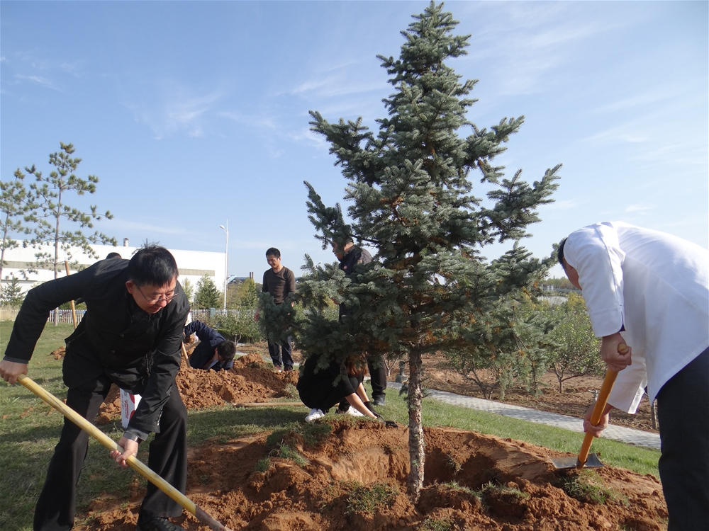 植樹(shù)的全過(guò)程,董事長(zhǎng)賀金龍親臨現(xiàn)場(chǎng)進(jìn)行指導(dǎo)。并親自握鍬示范栽植技術(shù),本次植樹(shù)活動(dòng)不僅是為綠化集團(tuán),為員工創(chuàng)造良好的工作和生活環(huán)境,調(diào)節(jié)員工的工作生活,為員工提供一次鍛煉的機(jī)會(huì),而且能夠通過(guò)本次活動(dòng)明白合作的重要性,大家擰成一股繩,共同致力于公司的發(fā)展。伴隨著大家的歡聲笑語(yǔ),46棵滿載全體植樹(shù)人員汗水的松樹(shù)全部種植完成,筆直的矗立在風(fēng)中;顒(dòng)結(jié)束后大家進(jìn)行了合影留念,紀(jì)念大家共同的勞動(dòng)成果。