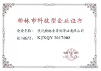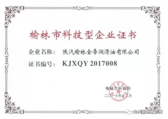 近日,榆林市科技局下發(fā)了科技型企業(yè)證書,授予陜汽榆林金帝潤滑油有限公司科技型企業(yè)稱號。