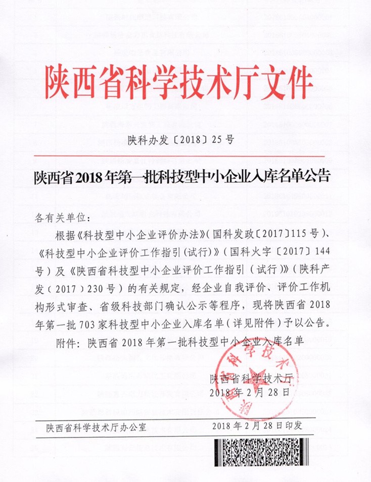 陜西省2018年第一批科技型中小企業(yè)名單于近期公布,全省共703家企業(yè)被正式納入陜西省科技型中小企業(yè)信息庫(kù),在經(jīng)過(guò)區(qū)、市、省主管單位層層審核,最終名列其中。