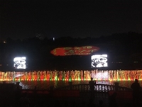 演出現(xiàn)場(chǎng)大氣恢弘,流光溢彩,明星們載歌載舞,觀眾臺(tái)座無虛席。噴泉隨著音樂此起彼伏,燈光穿過榆溪坊水上秀場(chǎng),把大地照亮,在五顏六色的燈光中,林肯禮賓車更加光彩四射!
