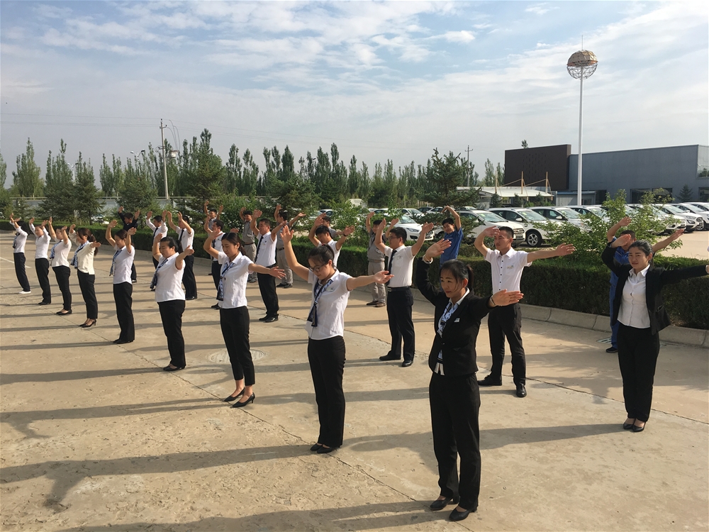 榆林汽車產(chǎn)業(yè)園永盛福特4S店每天的工作是從做早操開(kāi)始的,大家經(jīng)過(guò)簡(jiǎn)單的操練后,精神飽滿地投入到自己的崗位上,我認(rèn)為這就體現(xiàn)了一種企業(yè)文化。首先,每天早上在固定的時(shí)間里,大家穿上統(tǒng)一的工服,動(dòng)作整齊劃一,在優(yōu)美的音樂(lè)中翩翩起舞,能夠加強(qiáng)溝通,凝聚員工的歸屬感;其次,在做早操過(guò)程中,每個(gè)人都是隊(duì)伍里的一員,每個(gè)人的一舉一動(dòng)都會(huì)影響集體的形象,無(wú)形中強(qiáng)化了員工的責(zé)任感,激發(fā)了員工的使命感;最后,在剛推行做早操的一段時(shí)間里,一些動(dòng)作標(biāo)準(zhǔn)的員工會(huì)受到表?yè)P(yáng),并被邀請(qǐng)到前排做動(dòng)作示范,這種鼓勵(lì)優(yōu)秀從而讓后進(jìn)員工見(jiàn)賢思齊的做法,賦予了員工榮譽(yù)感。